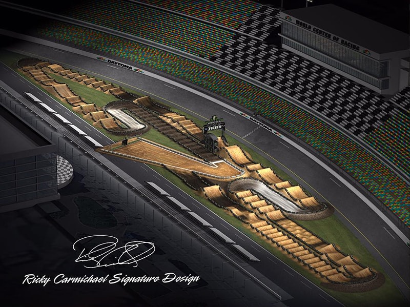 Seht nachfolgend alle Track-Maps inklusive dem von Ricky Carmichael designten Kurs der am zehnten März auf dem Daytona International Speedway ausgetragenen zehnten Runde und verschafft euch einen Eindruck davon, mit welchen Herausforderungen Ken Roczen, Eli Tomac, Marvin Musquin und Co. zurechtkommen müssen, wenn sie um die US-SX-Titel 2018 fighten.