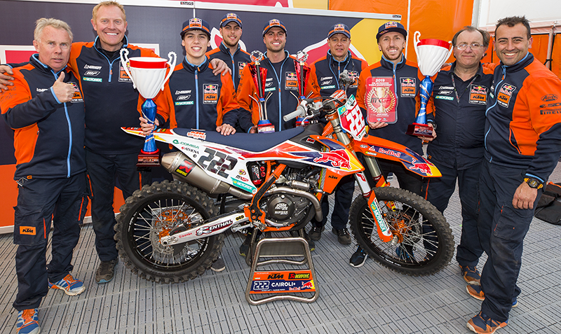 Bei dem am letzten Märzwochenende auf dem Eurocircuit von Valkenswaard ausgetragenen 3. Aufeinandertreffen der FIM Motocross Weltmeisterschaft 2019 stellten die KTM-Werkspiloten Antonio Cairoli und Jorge Prado eine unschlagbare Macht dar. Die beiden Fahrer gewannen beim Großen Preis der Niederlande jeweils mit Maximalpunktzahl die Tageswertungen der Premiumklassen MXGP und MX2.