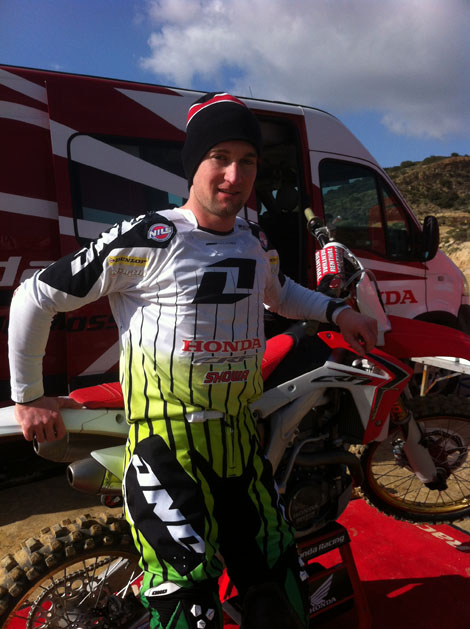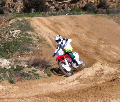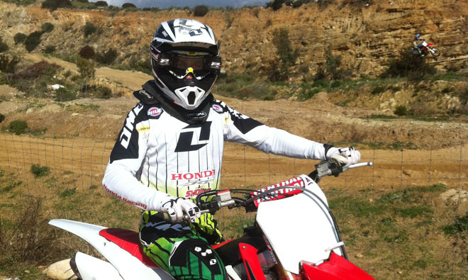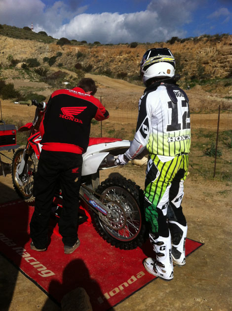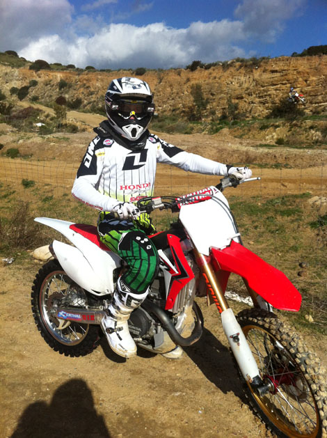 hat uns heute mit ein paar Bildern aus erster Hand versorgt, die ihn beim Testen mit seinem neuen Arbeitsgerät auf der Strecke in Marakalagonis/Sardinien zeigen. Und wir sagen: Stylisch, stylisch, Champ!