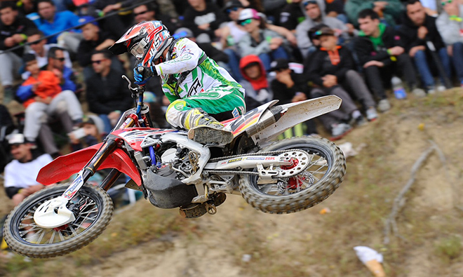 Für den Honda-Piloten verlief das Freie Training zufriedenstellend, er kam sowohl mit dem Motorrad als auch mit der 1.620 Meter langen Hartbodenstrecke gut zurecht. Nach eine paar kleinen Änderungen am Setup ging es positiv gestimmt ins Zeittraining. Jetzt begann ein Lotteriespiel. Im strömenden Regen absolvierte das Fahrerfeld der MX2 die zwanzigminütige Session. In der ersten Runde musste also die Zeit gesteckt werden, da sich der Zustand der Strecke nicht verbessern würde: „Meine Runde war nicht die Schnellste, aber an sich noch ganz ok.“ Als 24. ging es für Jacobi in das Qualifikationsrennen.
