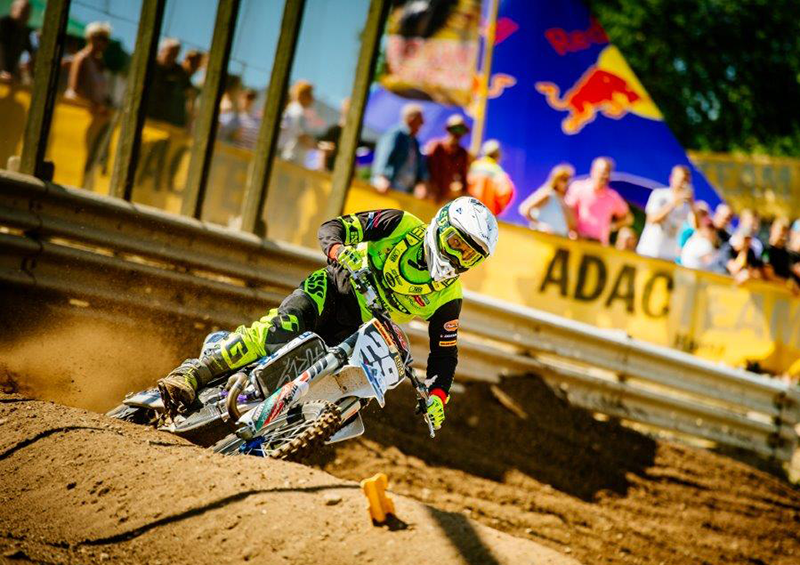 Den 6.000 angereisten Motocross-Fans wurde dann am Sonntag ein außerordentliches Spektakel geboten. Bei besten Wetterbedingungen, gingen die Masters-Piloten an den Start. Der Start des ehemaligen Junioren-Weltmeisters war ok, er ging an Position sieben liegend in die erste Kurve, hatte sich aber bereits nach zwei Runden auf Rang fünf vorgefahren, um dann im siebten Umlauf die Führung zu übernehmen. Parallel zu Henrys Fight, pflügte sich Max Nagl, der einen schlechten Start hatte, durchs Feld und kam mit einem immensen Tempo an den 21-Jährigen heran. Nun kam es zum Kampf der beiden WM-Piloten. Obwohl Henry alles versuchte, ging Max am Mann aus Bad Sulza vorbei. Aber aufgeben wollte er noch nicht, also drückte er nochmal aufs Tempo und saugte sich wieder an den Konkurrenten heran. Als er eine kleine Lücke ahnte, überraschte er Max Nagl und drückte sich an ihm vorbei. Max der natürlich auch nicht aufstecken wollte, hielt dagegen, musste aber die Strecke kurz verlassen und hielt die Position vor Henry, um als erster die Ziellinie zu überqueren. Weil sich die Startnummer 12 einen Vorteil verschafft hatte, wurde Henry schließlich doch als Sieger des ersten Laufes gewertet. „Das war ein fairer und spannender Zweikampf. Wir sind beide ehrgeizige Sportler, die jedes Rennen gewinnen wollen. Ich denke, die Entscheidung der Rennleitung geht klar.“